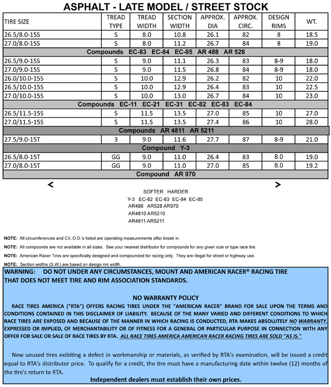 Street Stock Asphalt racing tires. Multiple nights of racing provide