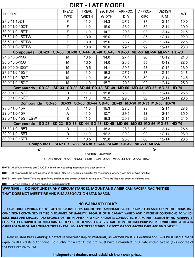 a spec tire. For more details on our variety of Late Model Dirt